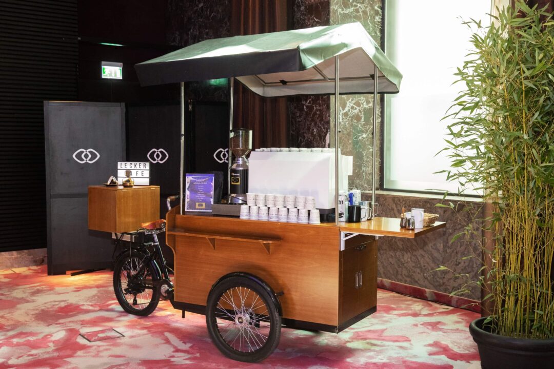 وجود باريستا يقوم بإعداد القهوة أمام الضيوف يمنح الحفل تجربة ضيافة فريدة.